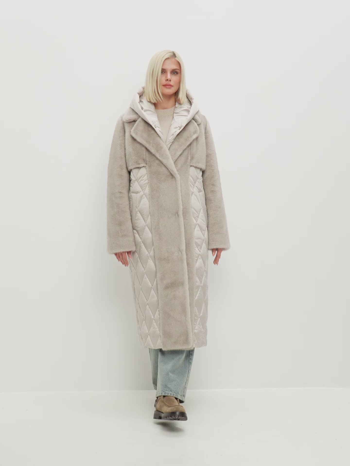 Quilted Oversized Faux Fur Pearl Coat for Women