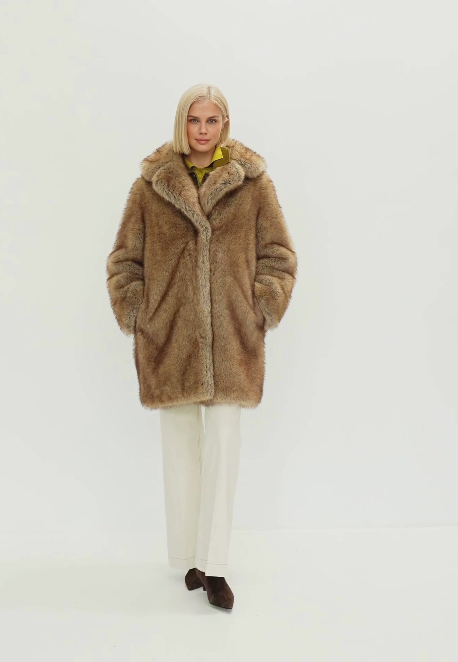 Lujoso abrigo de piel sintética Natalie - Marrón