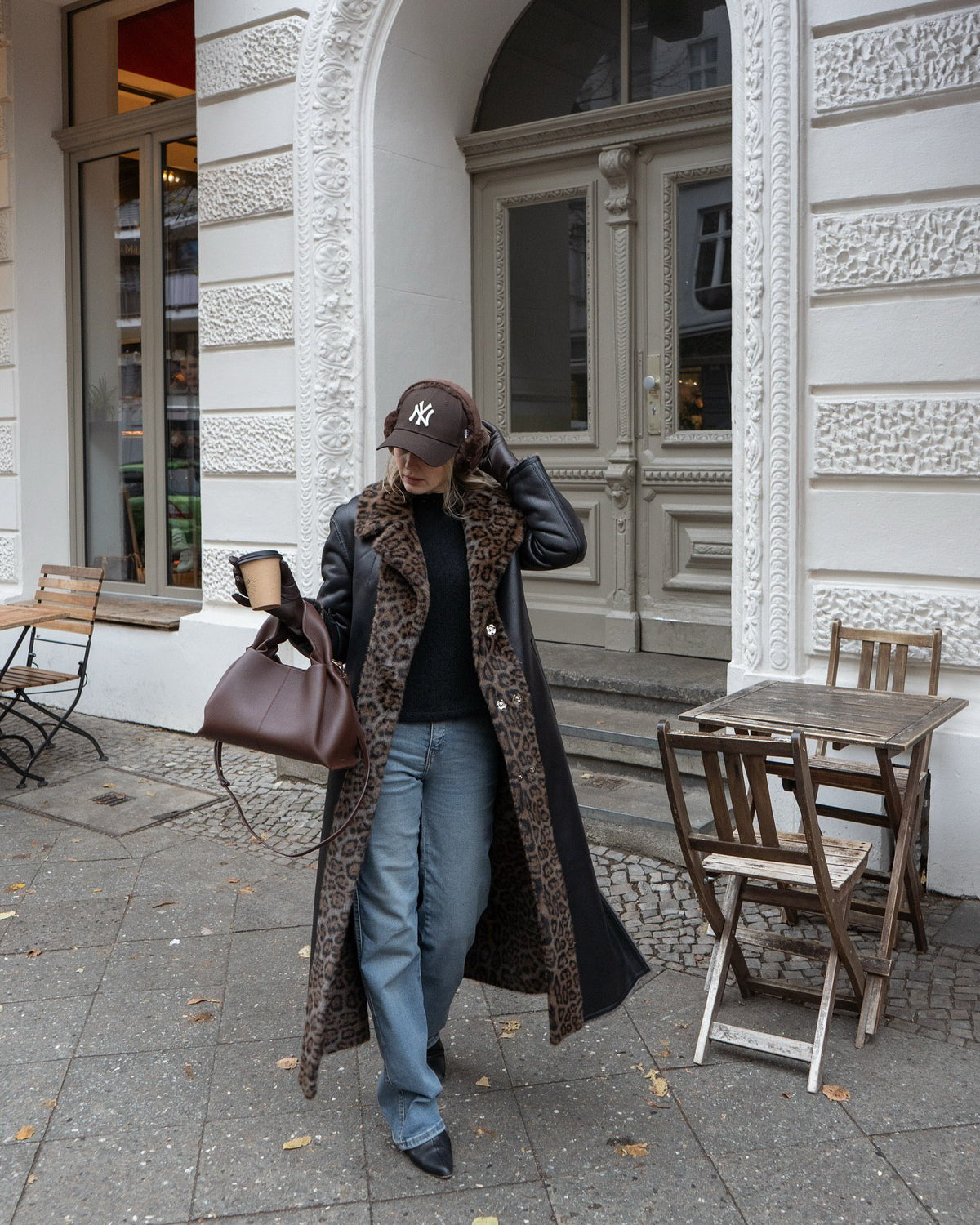 Odwracalny długi zimowy płaszcz ze sztucznego futra